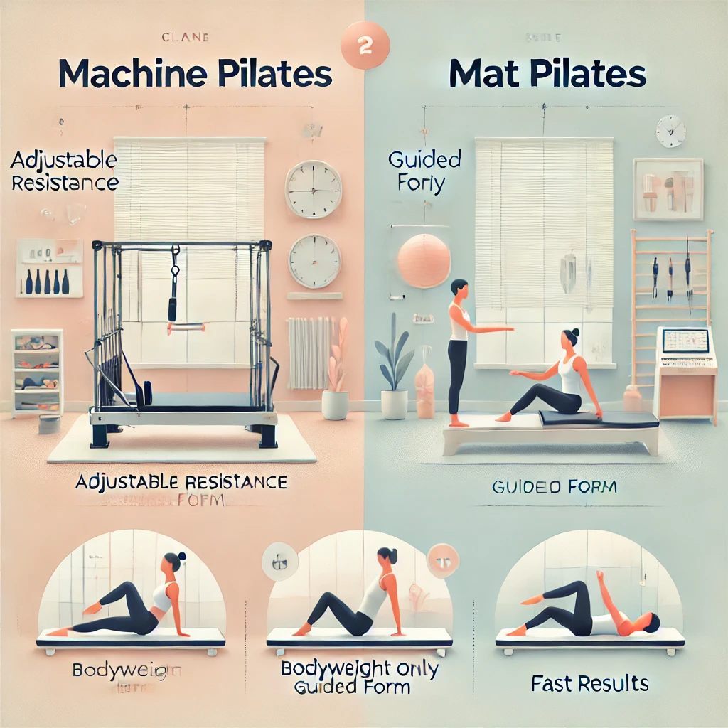 実は、この2つは使う器具だけじゃなくて、効果の出方や向いている人も違うんです。マシンは初心者でも正しいフォームを身につけやすく、マットは自宅で気軽に続けられるという特徴があります。でも、料金も倍くらい違うので、自分に合った方を選ぶことが大切なんですよね。