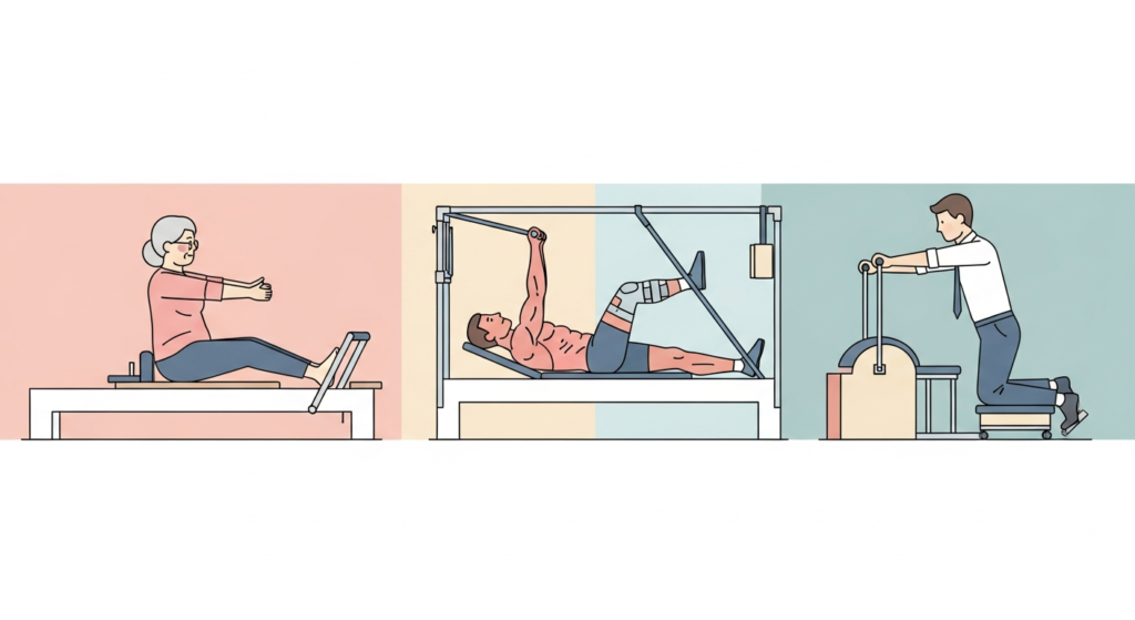 運動経験や年齢、目的によって最適なアプローチは異なります。しかし、マシンピラティスの柔軟性の高さが、多様なニーズに応えられる理由となっています。