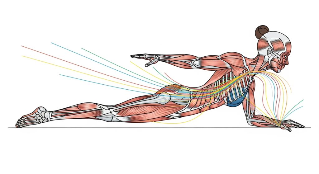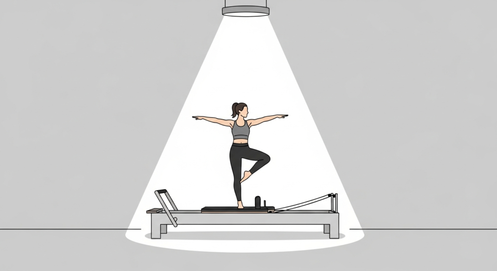 体幹トレーニングにおいてマシンが優れている理由は、不安定な状態でのバランス訓練ができる点にあります。リフォーマーの動くキャリッジ(台座)の上でエクササイズを行うことで、体幹の深層筋が自然と働き、安定性が向上します。