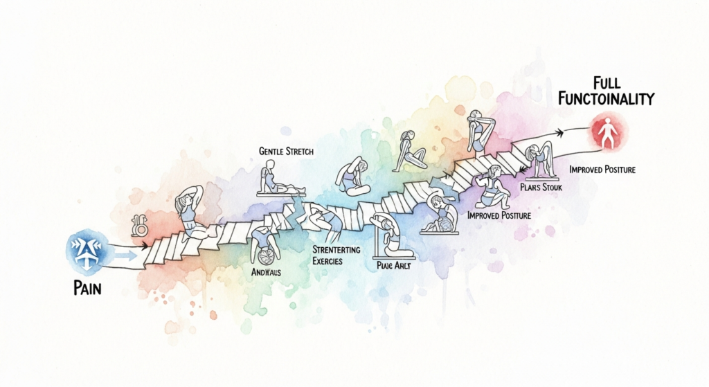 あなたのペースで、無理なく、でも諦めずに。ピラティスとともに、五十肩のない快適な毎日を取り戻していきましょう。